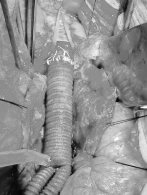 Abdominal aort anevrizması ameliyatı Y greft yapılmış hali